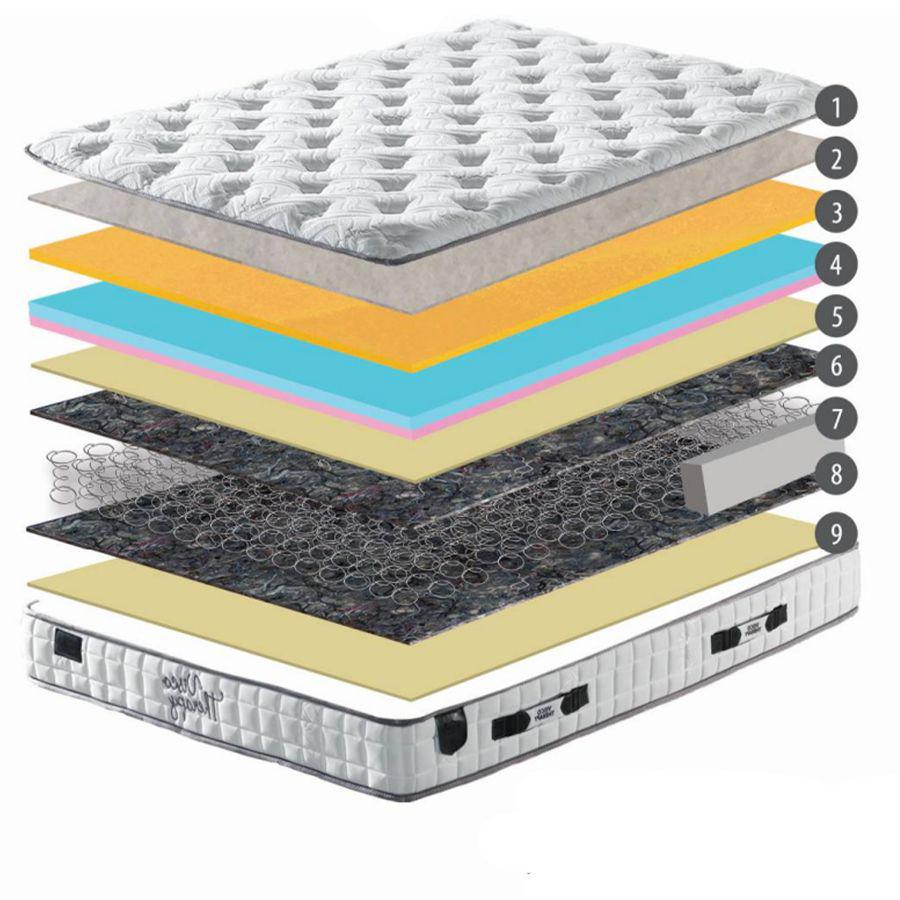 Unsere VISCO THERAPHY Matratze ist mit einem hochdichten Kaschmirgewebe gesteppt, mit dem ein einzigartiger Kontakt mit dem hochdichten Kaschmirgewebe angestrebt wird.